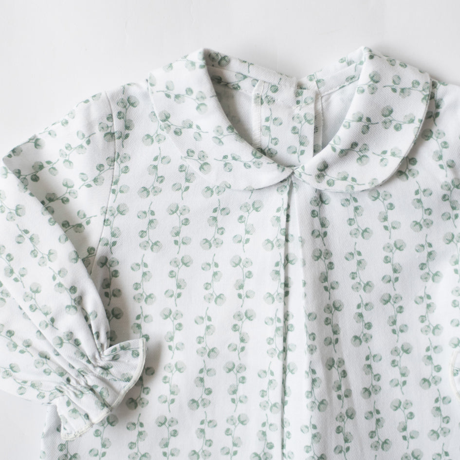 cuello bebé en el mismo tejido y las mangas acabadas en puños fruncidos. Botonadura en la parte trasera. La composición es 100 % Algodón. Fabricado en España para Regina for kids.