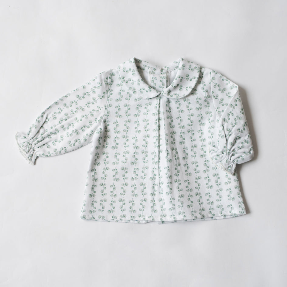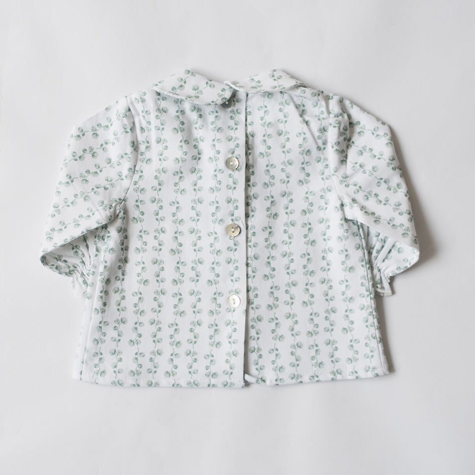 Blusa de viyella de manga larga en tejido de flores y en colores verdes. Lleva el