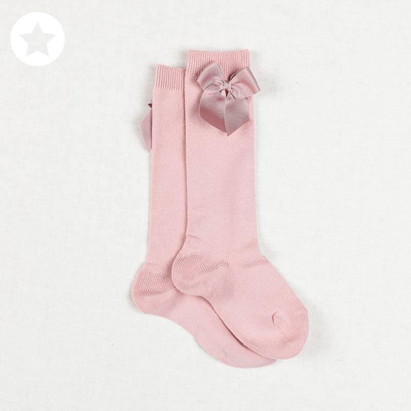 Medias con lazo lateral rosa palo