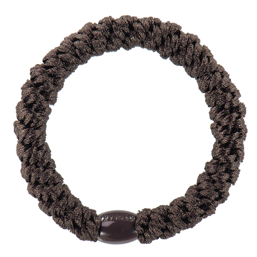 La goma de pelo más original,elástica y duradera. La auténtica Kknekki en color marrón. Ideal para las teens y las mamás para ir cómodas y a la última.