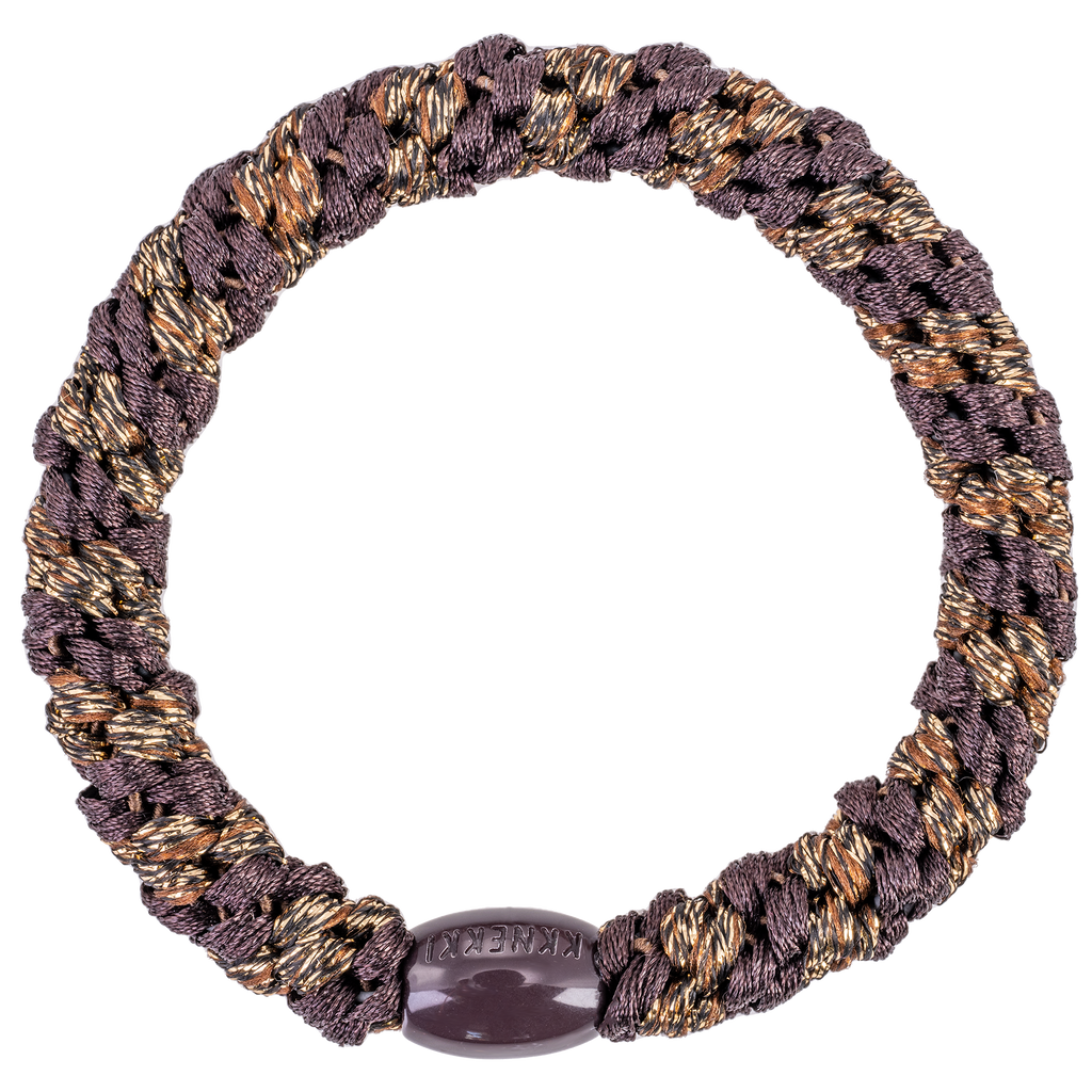 La goma de pelo más original, elástica y duradera. La auténtica Kknekki en tonos combinados en tonos marrones con pinceladas glitter. Ideal para las teens y las mamás para ir cómodas y a la última.
