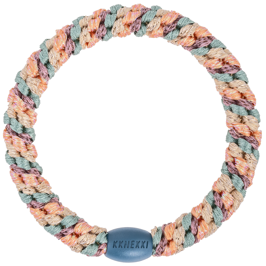 La goma de pelo más original, elástica y duradera. La auténtica Kknekki en colores verde agua, burdeos suave, naranja suave y camel con pinceladas en glitter. Ideal para las teens y las mamás para ir cómodas y a la última.