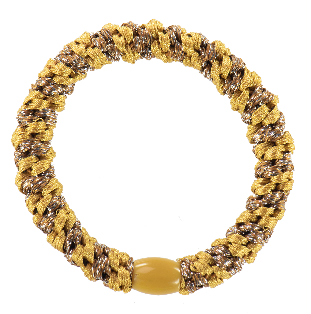 La goma de pelo más original, elástica y duradera. La auténtica Kknekki en tonos mostaza y camel. Ideal para las teens y las mamás para ir cómodas y a la última.