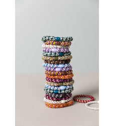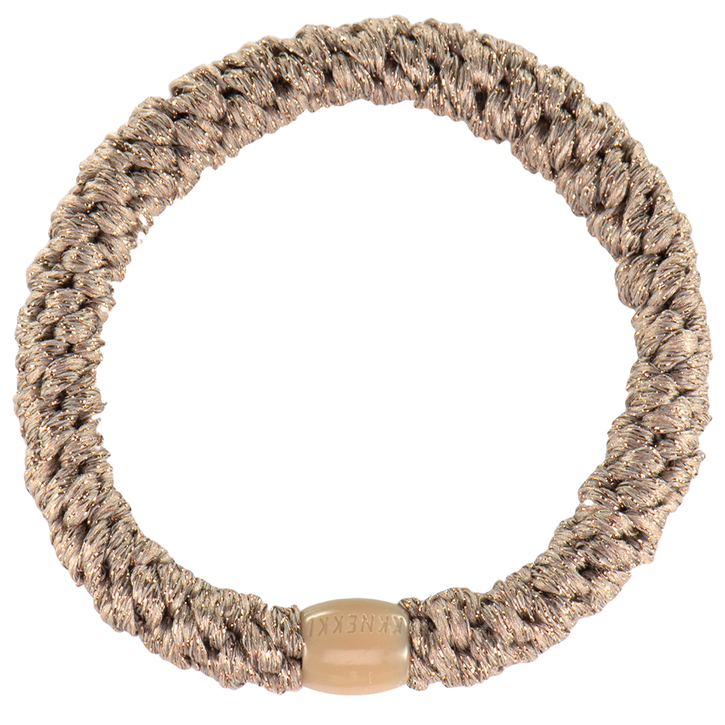 La goma de pelo más original, elástica y duradera. La auténtica Kknekki en color camel fuerte con pinceladas en glitter. Ideal para las teens y las mamás para ir cómodas y a la última.