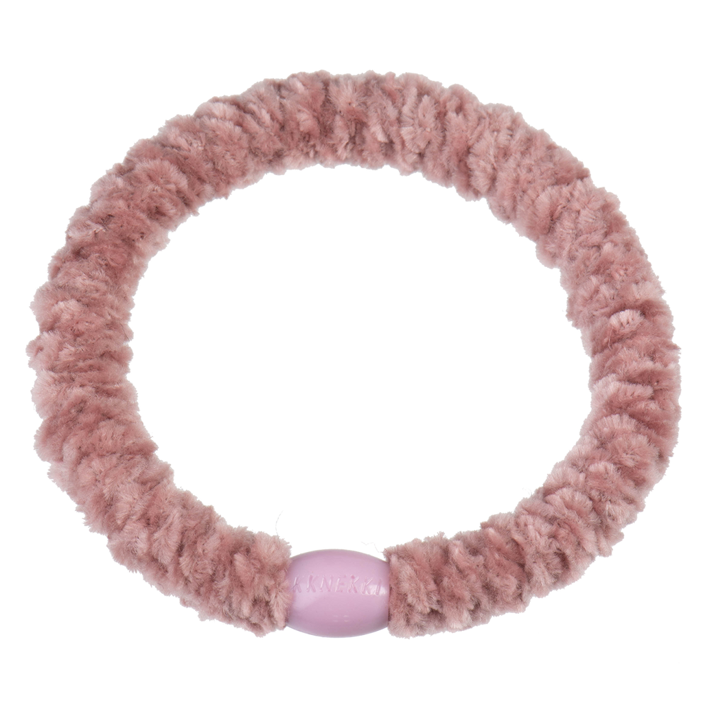 La goma de pelo más original, elástica y duradera. La auténtica Kknekki en terciopelo rosa palo. Ideal para las teens y las mamás para ir cómodas y a la última.