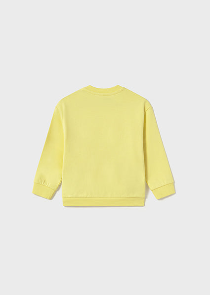 Sudadera amarilla con motivo perrito en la parte delantera.