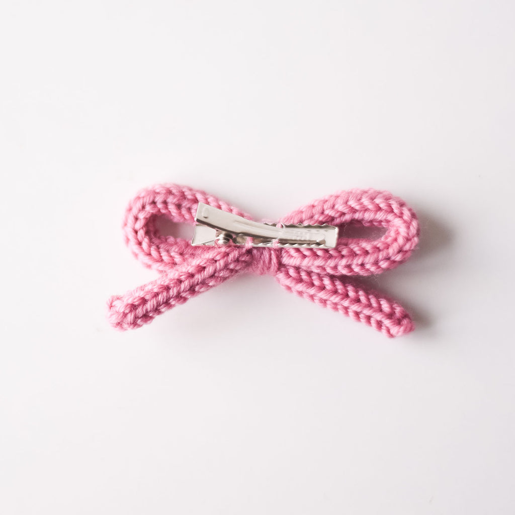 Lazo mediano formando por una lazada de lana en color rosa tamarisco. La lazada mide 6,5 cms. de largo y las colitas miden 2,5 cms. Lleva pico pato de 3 cms como agarre. Fabricado en España para Regina for kids.
