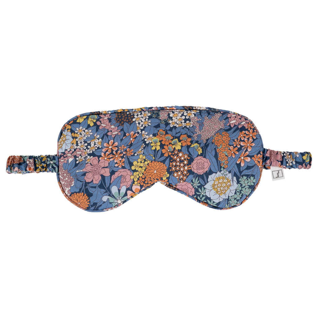 Antifaz en tejido Liberty London en tonos rosas, verdes, ocres, terracota. Está forrado y relleno de lavanda, flor muy relajante. Pertenece a la colección KENIA.